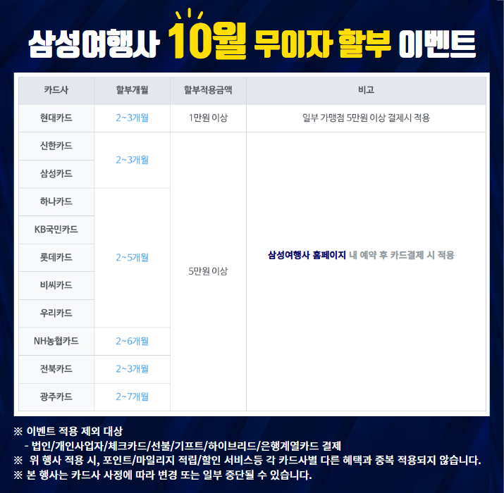 홈페이지에서 직접 예약 후 결제 시 25년 10월 카드 무이자 할부 관련 안내 드리니 아래와 같이 확인부탁드립니다.