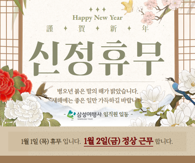 연말연시 휴무일 : 2026. 01. 01(목)