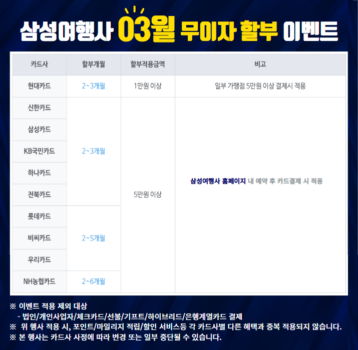• 26년 03월 카드 무이자 할부 안내