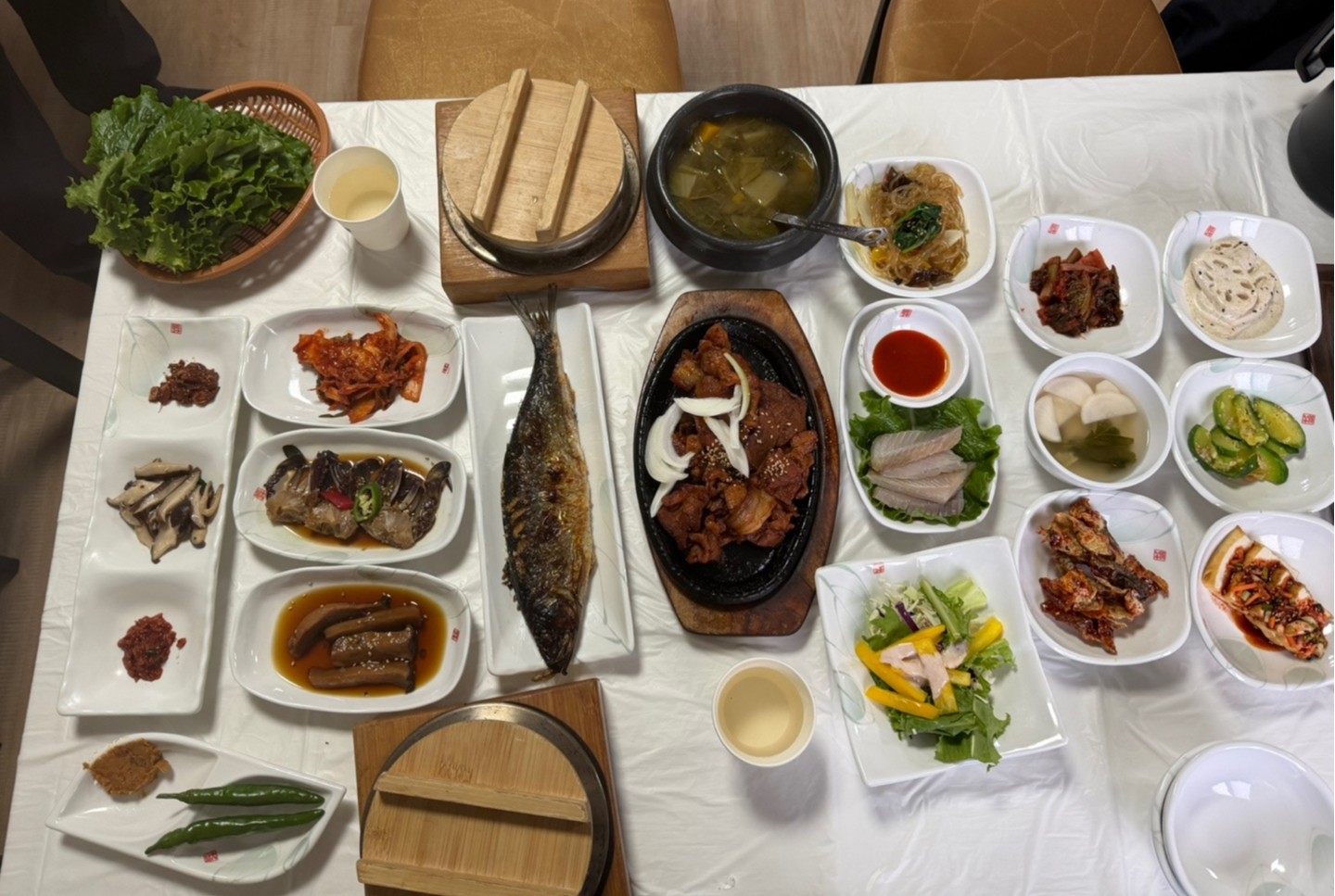 특가 상품에서는 없던 점심 제공이라 부품 마음으로 병영서가네식당에 도착해 연탄불고기 정식을 먹었어요. 남도식이라서 그런지 밑반찬도 많이 나오고 쌈도 같이 나와서 배불리 먹을 수 있었어요.